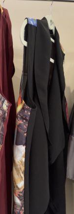 Made of high-quality Korean chiffon fabric with a special Tharwa Couture print overlaid with French crepe chiffon in maroon colour. An elegant, practical and unique piece with its fabric.